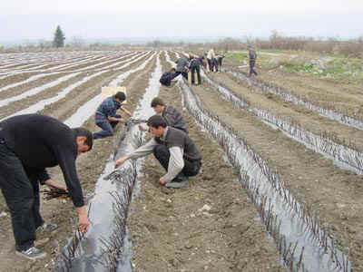 Новая технология посадки прививитых саженцев на полиэтиленовой пленке.
