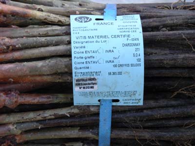 Полученные из Франции сертифицированные саженцы Шардоне.
